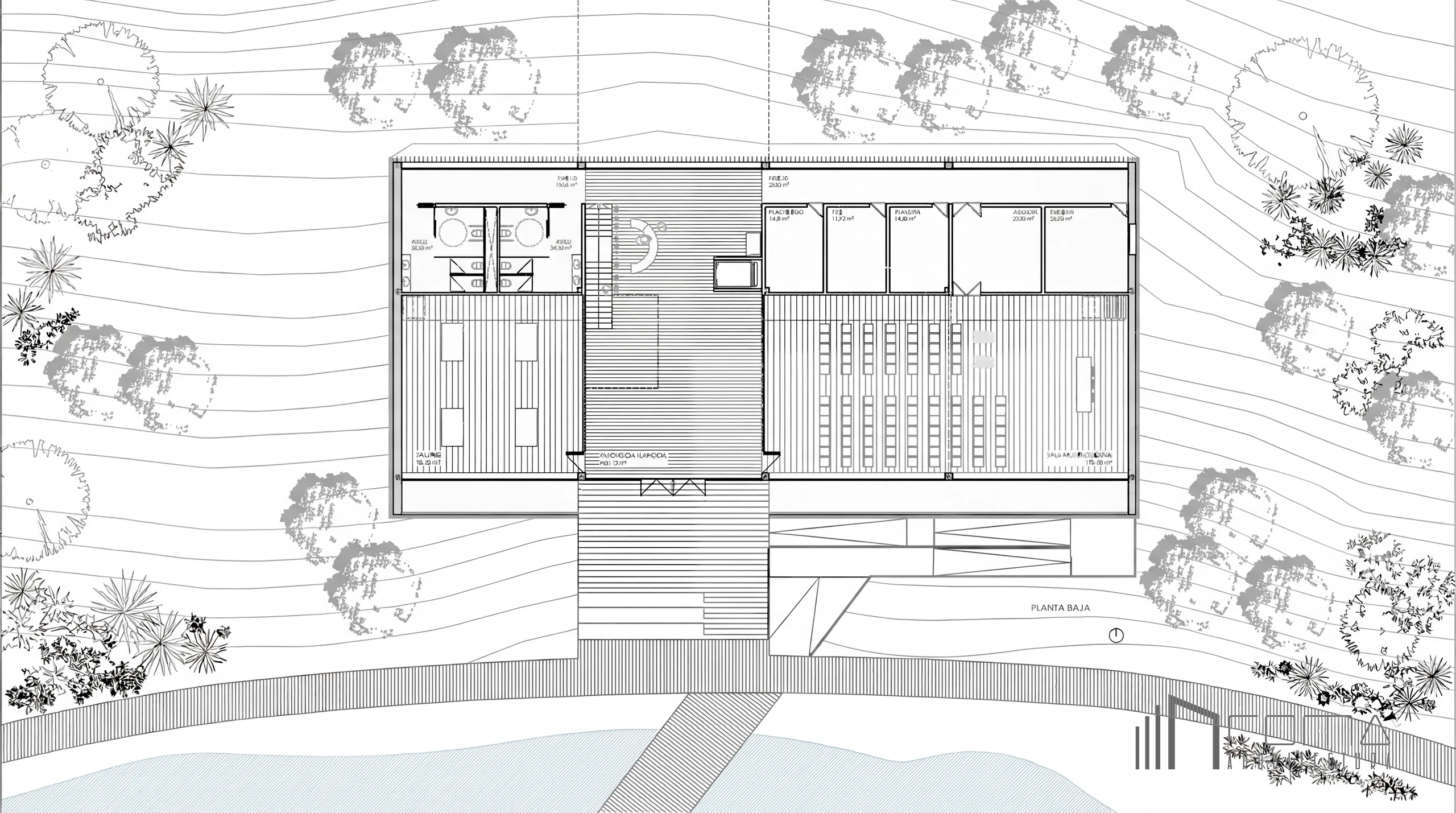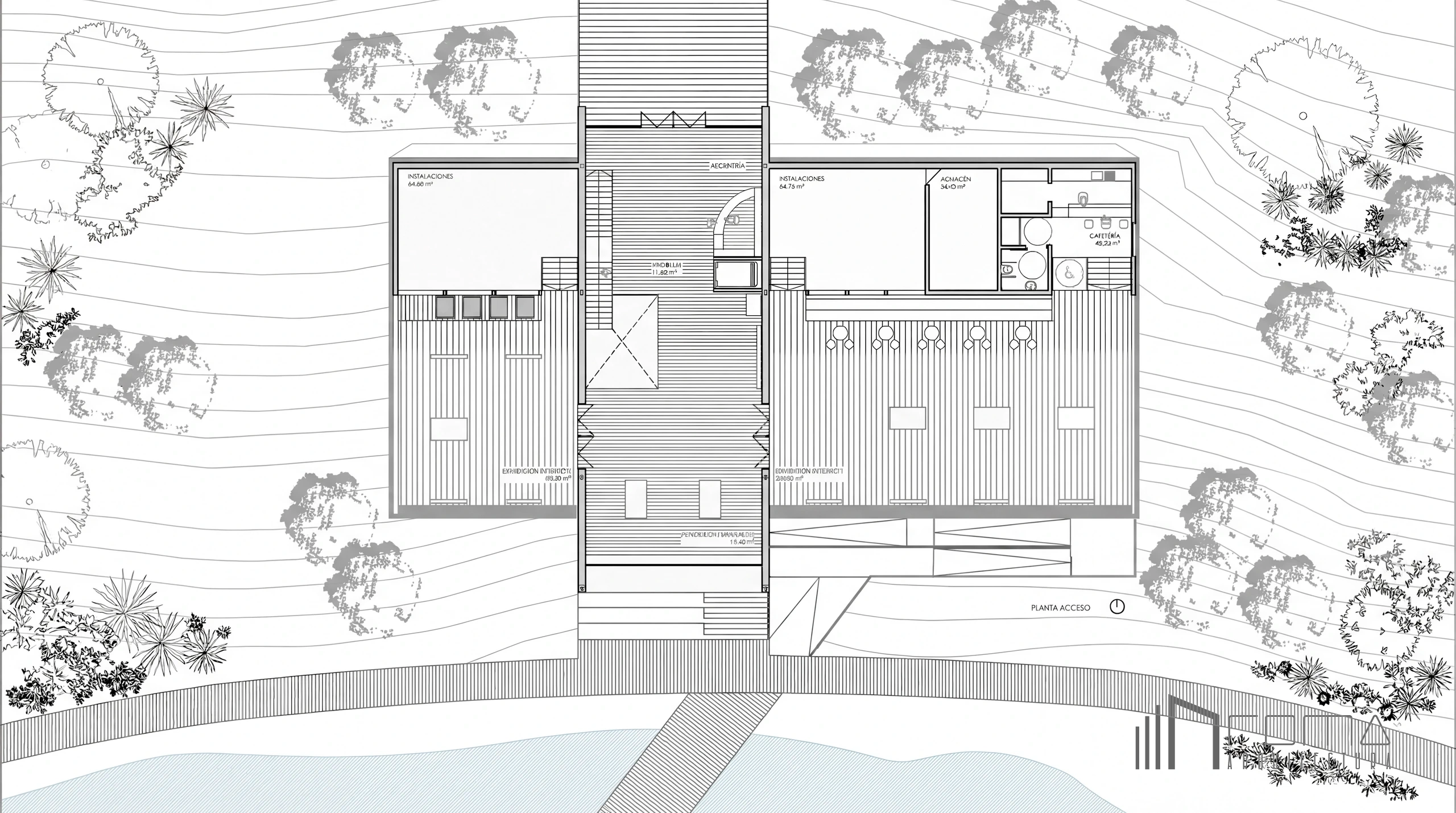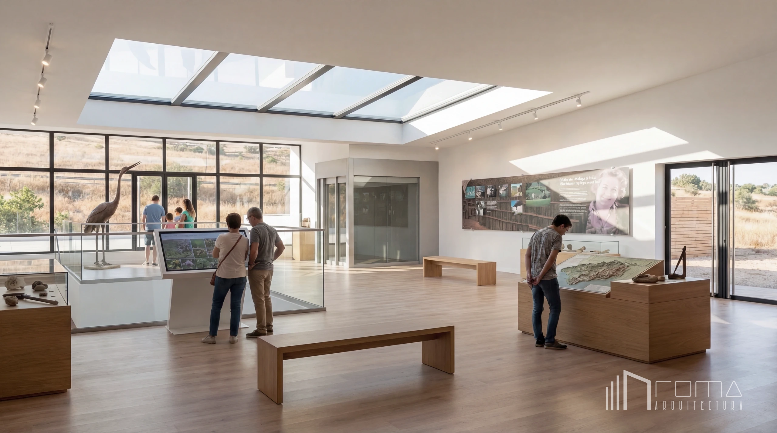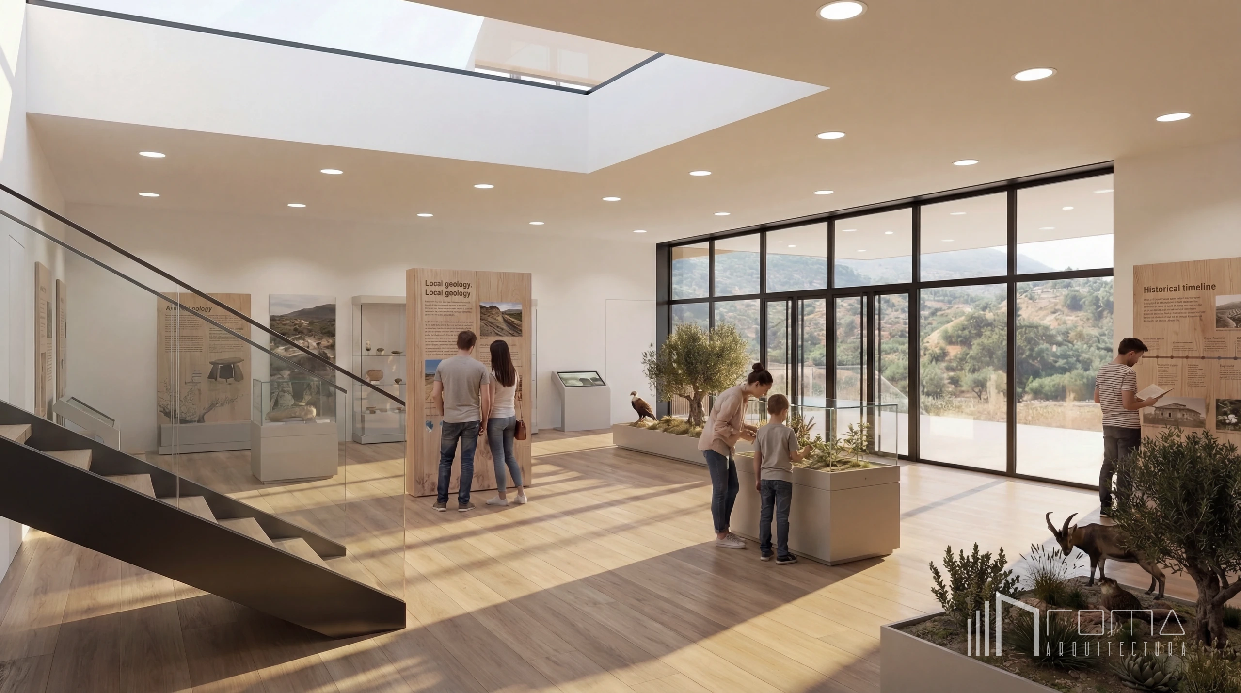 This architecture and design competition proposal for a new Nature Visitor Centre in Malaga is a modern and minimalist intervention in a protected area. Our bespoke approach creates an eco-friendly architectural solution, offering a clean design that integrates perfectly with the natural landscape. The project showcases smart interiors and custom features, using high-end finishes to deliver a unique experience that honours the environment. Every detail ensures a cohesive aesthetic reflecting contemporary design and sustainability.