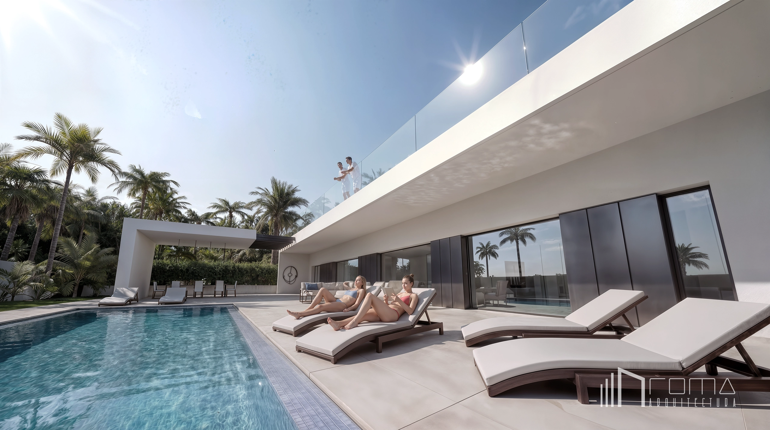 This bespoke new construction project in Nueva Andalucia (Marbella) is a prime example of modern minimalist architecture. Currently under construction, this luxury villa has been designed with a contemporary single-story open plan layout. The property features a double-height entrance, 5 en-suite bedrooms, and a private lift leading to a magnificent top terrace with a chill-out bar and jacuzzi, offering stunning views over the golf valley. Designed for seamless indoor-outdoor living, the villa includes a heated swimming pool, a feature exterior staircase, and a custom outdoor BBQ kitchen, all finished with exclusive luxury brands and integrated home automation.