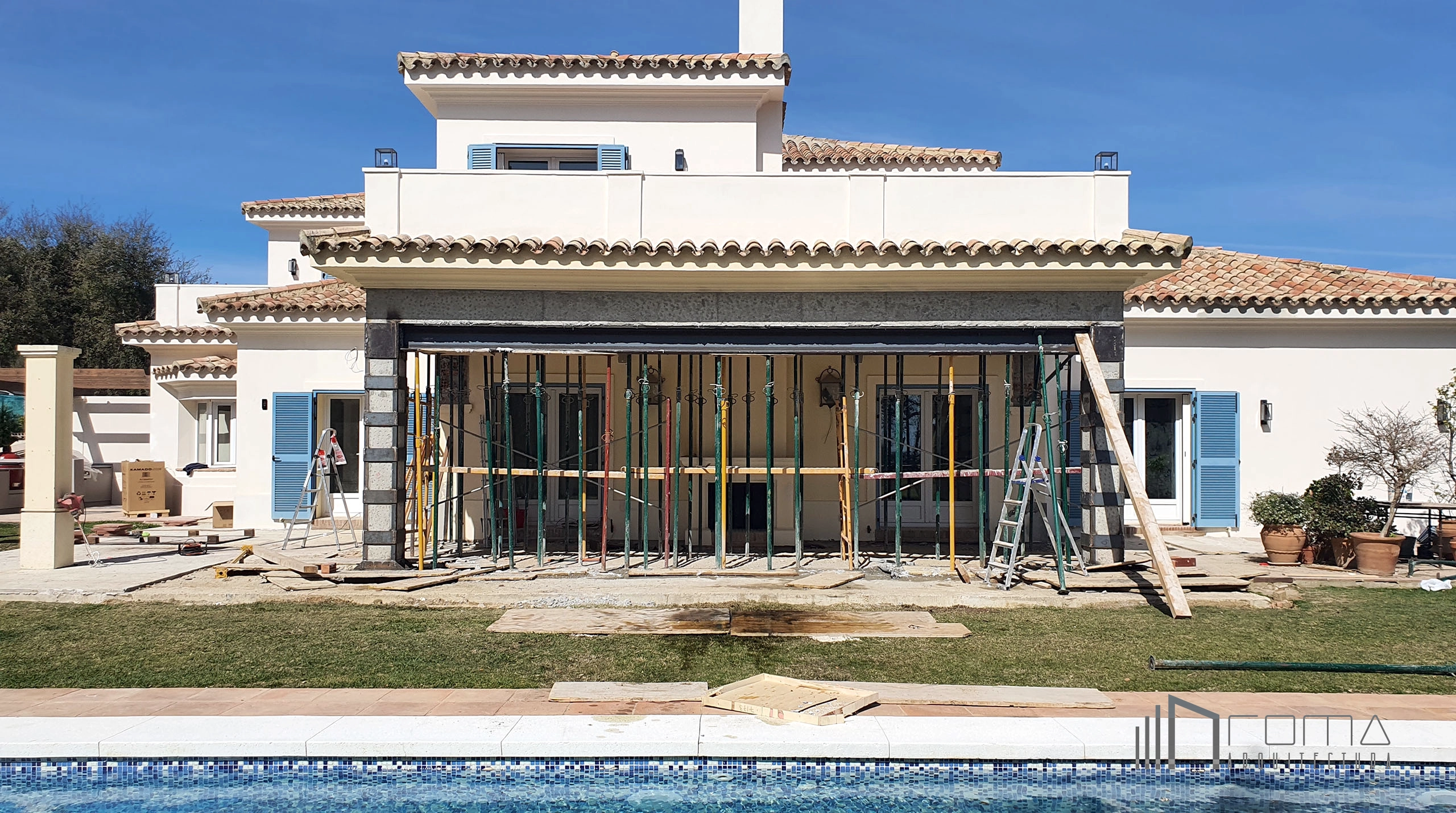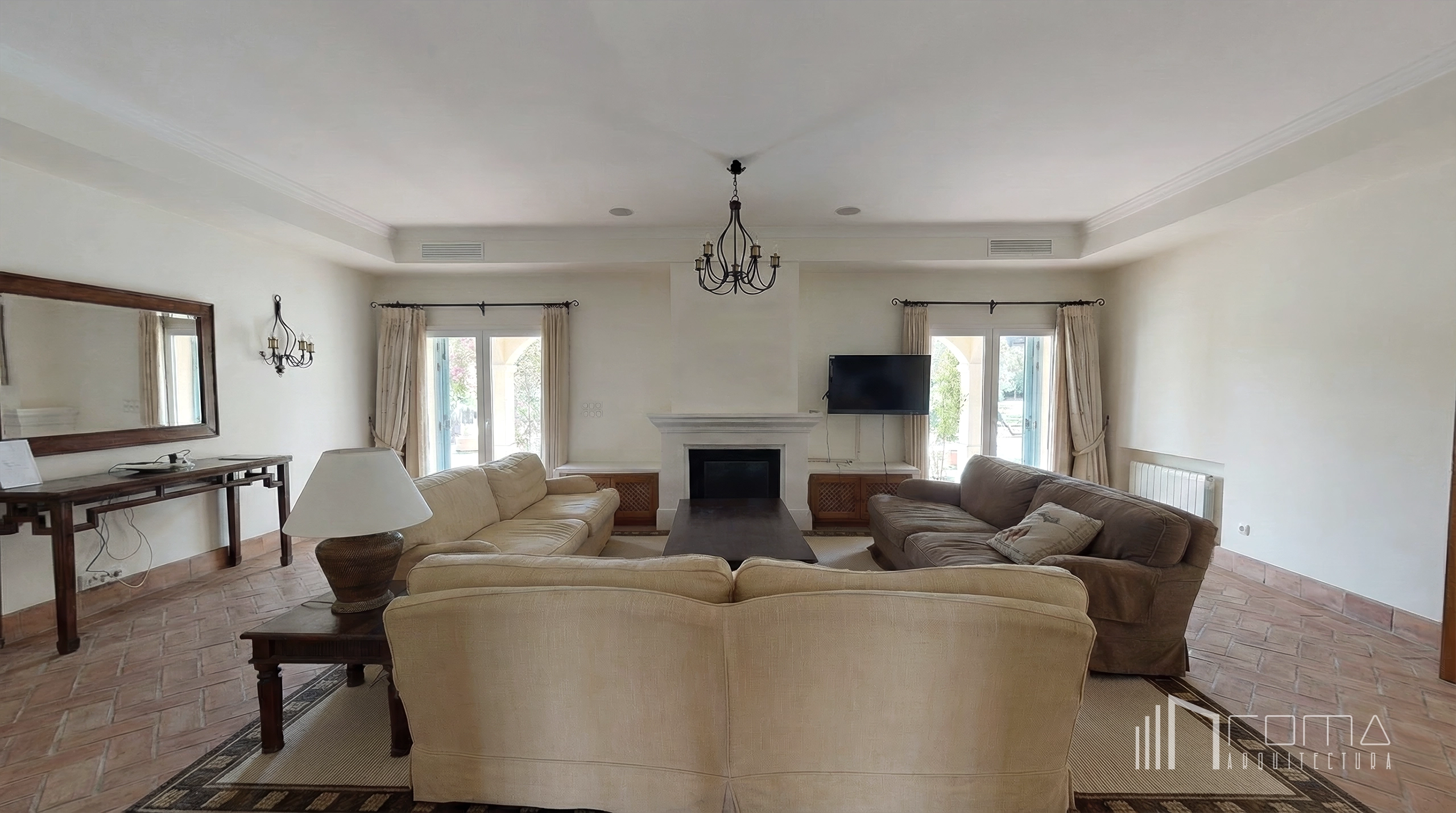 This bespoke renovation in La Reserva (Sotogrande) showcases a deep transformation of architecture and interiors. The reform included a complex structural reinforcement, using a steel beam to create a seamless open-plan porch that redefines the property’s aesthetics. Inside, traditional terracotta floors and outdated furniture were replaced with high-end finishes, featuring a minimalist open kitchen and a double-sided feature fireplace. With a renewed swimming pool, a curated landscape, and an outdoor BBQ area, this villa has been reimagined as the ultimate luxury dream home.