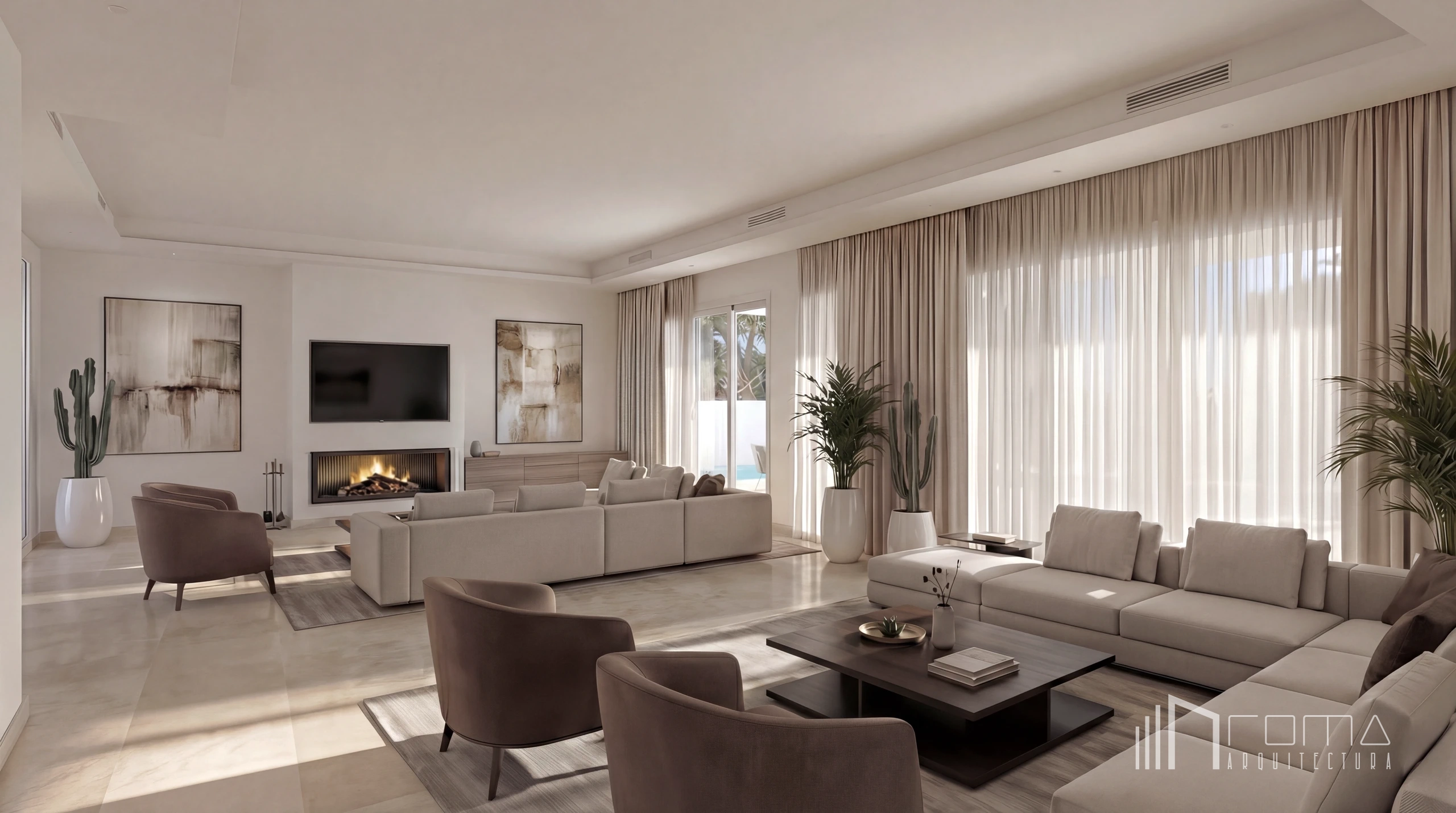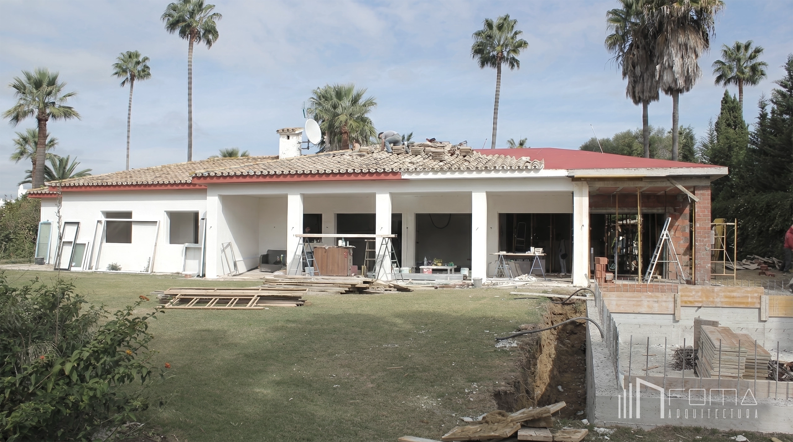 This renovation of a luxury villa in Sotogrande Costa represents a comprehensive transformation of both architecture and interior design. The project involved a full interior and exterior upgrade, including a minimalist porch, a brand-new swimming pool and a landscaped garden. With a redesigned kitchen and living room featuring contemporary furniture and high-end finishes, this property has been transformed into a functional and sophisticated modern dream home.