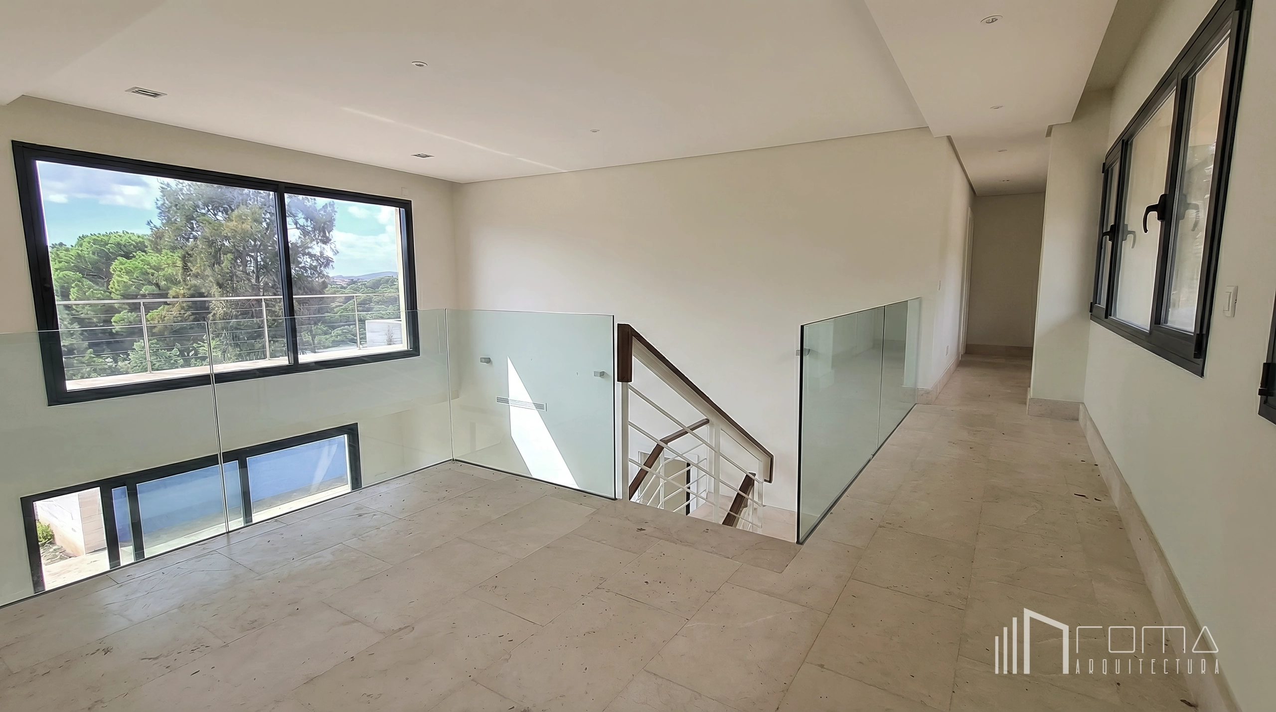 Located in the heart of Sotogrande’s golf district, this modern property underwent a radical architecture and interiors transformation. From complex structural reinforcement to a total remodel, this luxury villa has been reimagined as a minimalist dream home. The reform features high-end finishes, a big open kitchen, a 3-sided glass fireplace, a double-height feature wall, and glass balustrades throughout, alongside exclusive amenities like a gym, sauna, cinema room, wine cellar, games room, bar, and library. Outside, a renovated infinity swimming pool and a custom entrance canopy enhance the curb appeal, while integrated home automation and bespoke furniture define this contemporary masterpiece.